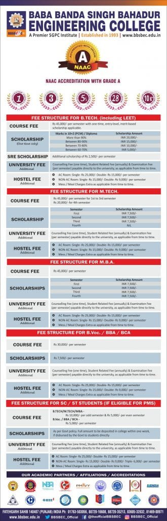 Baba Banda Singh Bahadur Engineering College (BBSBEC) is more than just an engineering college; it is an institution committed to nurturing talent and fostering innovation. With its extensive course offerings, reasonable fee structure, and strong placement record, BBSBEC stands out as a top choice for aspiring engineers and managers. The college’s focus on holistic education, coupled with its commitment to providing a supportive learning environment, ensures that students are well-prepared to meet the demands of the modern workforce.