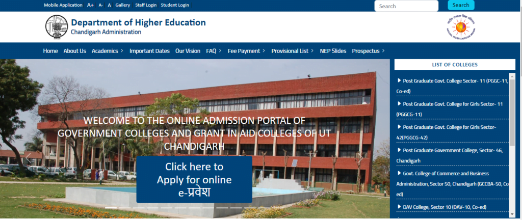 The Department of Higher Education (DHE) Chandigarh provides a common platform for undergraduate and postgraduate admissions in the city’s colleges.